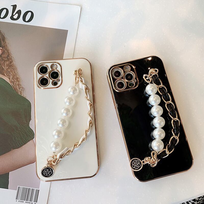エレガントでおしゃれなパールチェーンベルト付きiPhoneケース。デザイン性も機能性も抜群!おしゃれなアクセサリーのような存在感。SNS映えもGOOD。バンドストラップに手を通すとまるで綺麗なブレスレットをしているみたい。落下防止にも役たつ!柔軟性に優れたソフト素材、落下などによる衝撃をしっかり吸収し、大切なスマホをキズからしっかり守る。