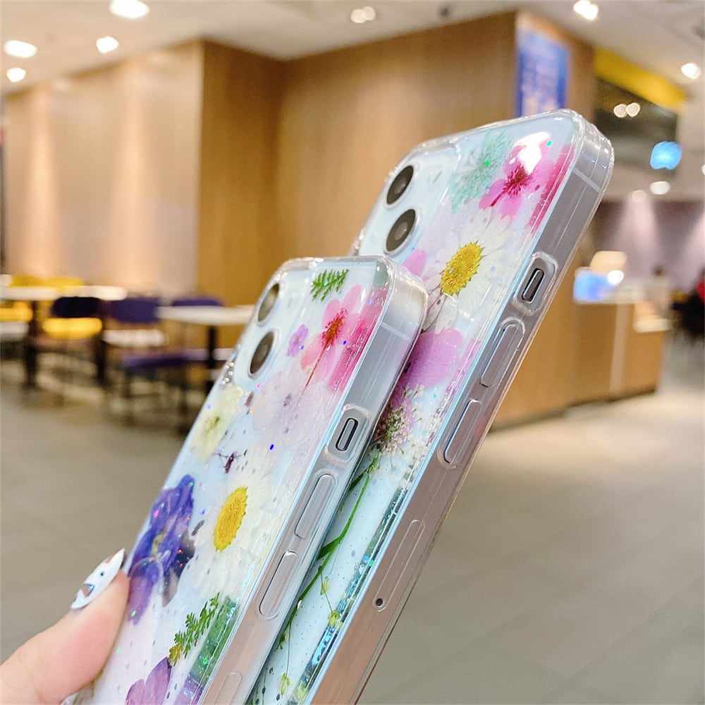 【同色同サイズ5点セット】iPhone 13 mini ケース スマホケース iphone11 ケース 押し花 iphone12ケース ラメ 花柄 レジンフラワー A04027T1