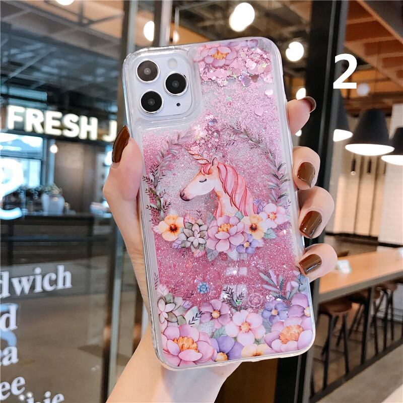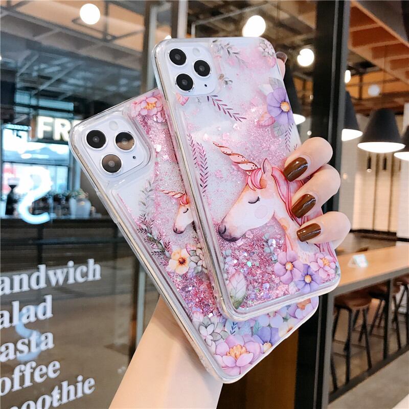 スマホケースを傾けると中のグリッターがさらさらと流れる様子は、見ている人を引き込ませます。