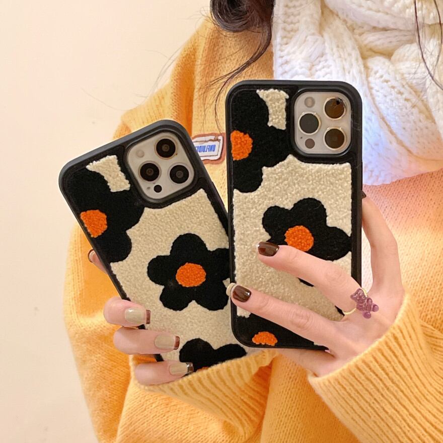 iPhone15 ふわふわ 刺しゅうデザイン オシャレ 耐衝撃 iPhone14Pro iphone13 ケース 花柄 フラワー A04080Q1