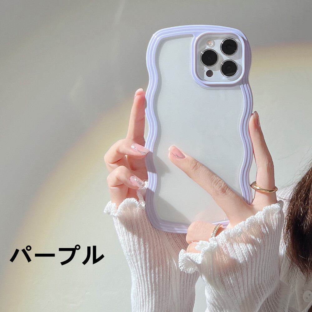 キュートなカラーとウェーブフレームが魅力的なiPhoneケース。