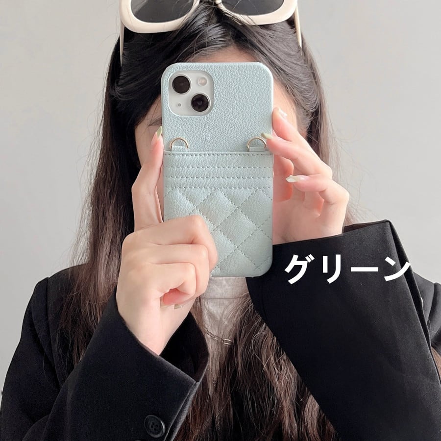 幅広いスタイルで楽しめるロングチェーンストラップ付きiPhone13 ケースです♪