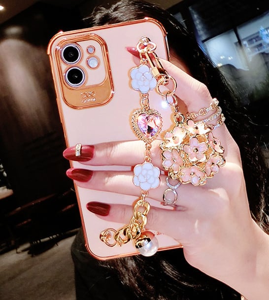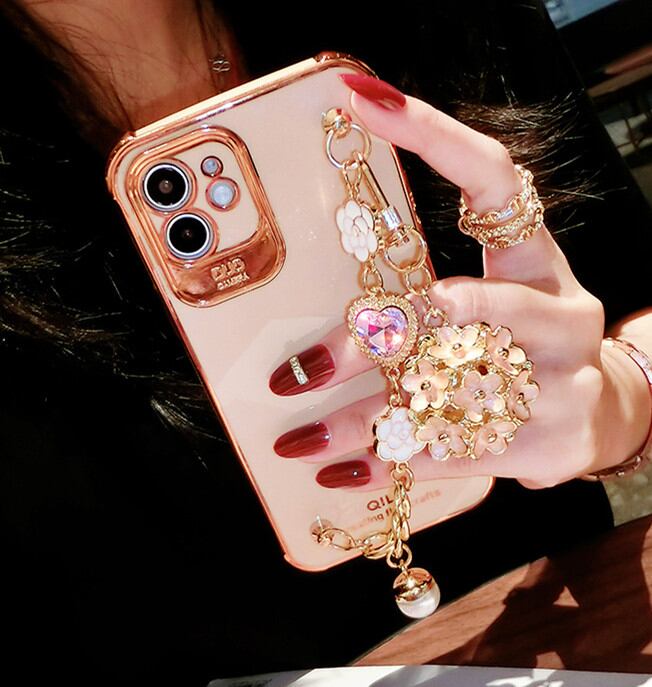 iphone12 ケース チェーンベルト付き iphone13 ケース 韓国 花のチャーム iphone se 第三世代 ケース A04152J1